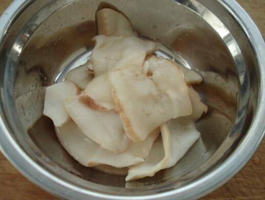 1、鲍鱼片解冻,用料酒腌制。