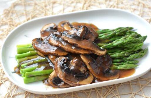 7、将牛肝菌浇在芦笋上即可。