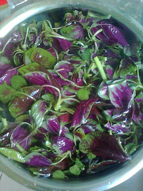 2、将蔊菜去根,淘洗两遍。加淡盐水浸泡。