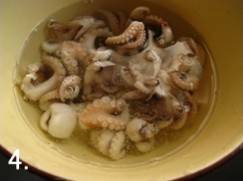 3、清洗完八爪鱼,在开水中快速汆烫。