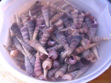 2、钉螺掰去尾,洗干净。