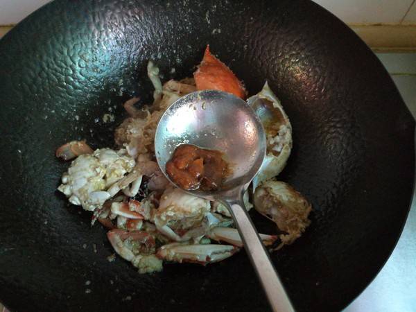 6、小火翻炒一会,使蟹肉逐渐熟透。