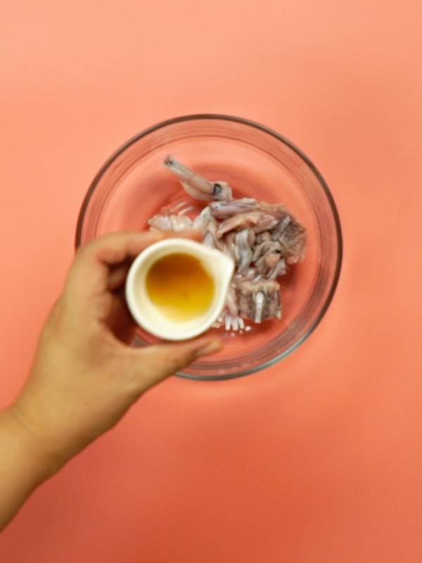 4、牛蛙用料酒腌制10分钟。