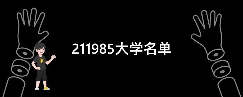 985工程院校:清华大学、北京大学、中国人民大学、北京航空航天大学、北京理工大学、北京师范大学、中国农业大学、中央民族大学、复旦大学、上海交通大学、同济大学、华东师范大学、南开大学、天津大学、南京大学、东南大学、浙江大学、中国科学技术大学、哈尔滨工业大学、吉林大学、大连理工大学、东北大学、山东大学、中国海洋大学、华中科技大学、武汉大学、中南大学、湖南大学、国防科学技术大学、厦门大学、中山大学、华南理工大学、四川大学、电子科技大学、重庆大学、西安交通大学、西北工业大学、西北农林科技大学、兰州大学。