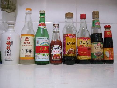4、这时候准备小半碗水,加入几滴油、一点香醋、料酒。
