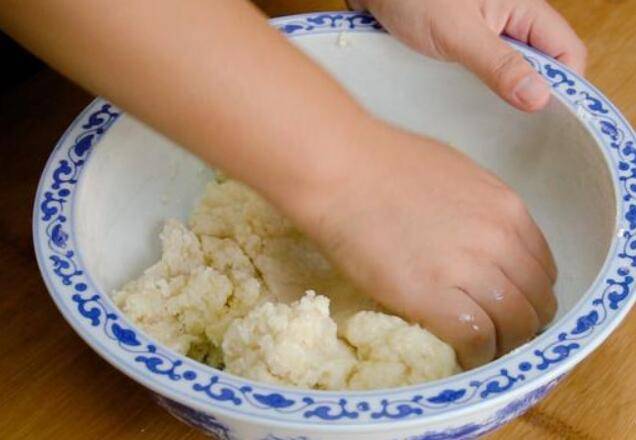 4、放凉之后再加少许的食用油,和成面团。加了油和面的时候不沾手,而且和的面团也是非常柔软的。