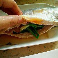 5、腌制好后,往往鱼肚子塞葱段,鱼嘴塞姜片。