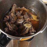 8、加入蚝油、酱油和水,没过鸭肉。