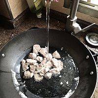 1、准备材料:鸡蛋花5克、槐花3克、木棉花20克、炒薏米30克、白扁豆30克、猪腱肉500克、陈皮5克、姜片适量。