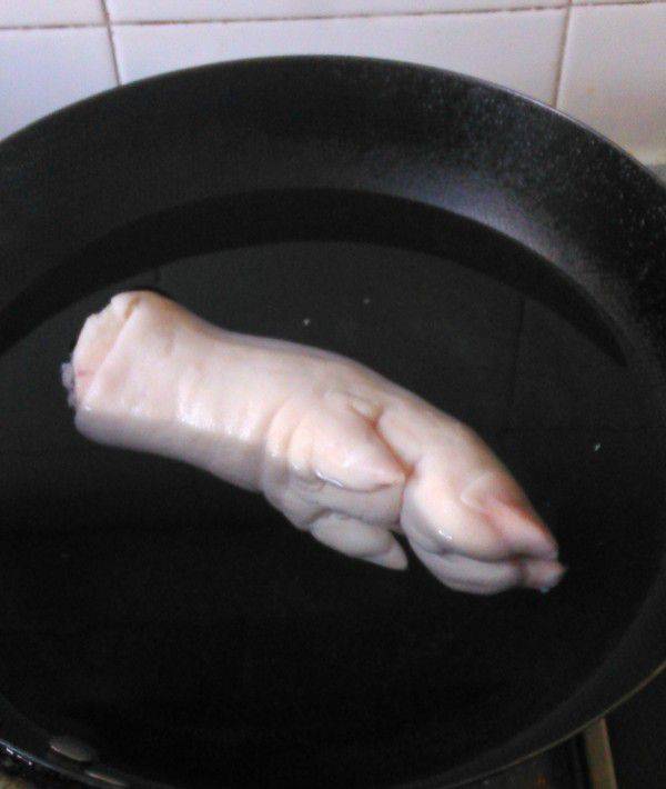 2、猪蹄洗干净后冷水下锅,煮十来分钟去血沫。