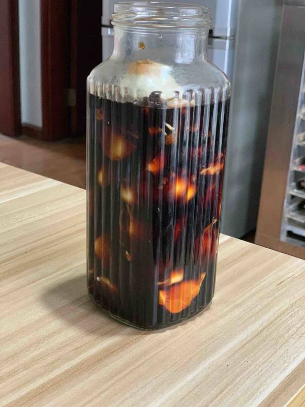 6、装入干净的玻璃瓶,倒入煮好的酱汁,密封保存15天以上,等蒜的辣味去掉即可。