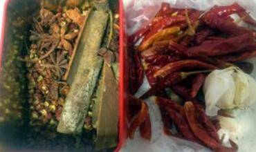 2、料酒三勺,老抽两勺,生抽4勺,盐一勺,辣椒油、老干妈适量。豆皮对半切,打结后铺在锅中。
