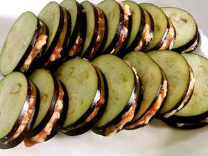 10、锅再烧热,将炸过一次的茄夹,再次复炸一遍,至外皮酥脆金黄,即可捞出。