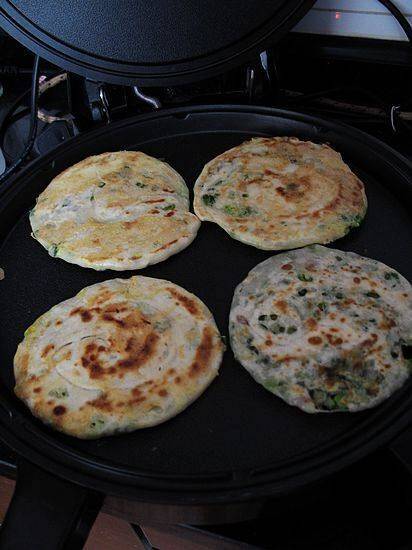 12、把擀薄的面饼放进打散的鸡蛋液中,使面饼两面都均匀地沾上鸡蛋液。