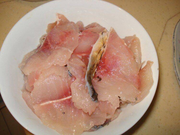 1、草鱼洗净去骨切片,用料酒和盐,生粉和鸡蛋清抓匀,腌制15分钟。