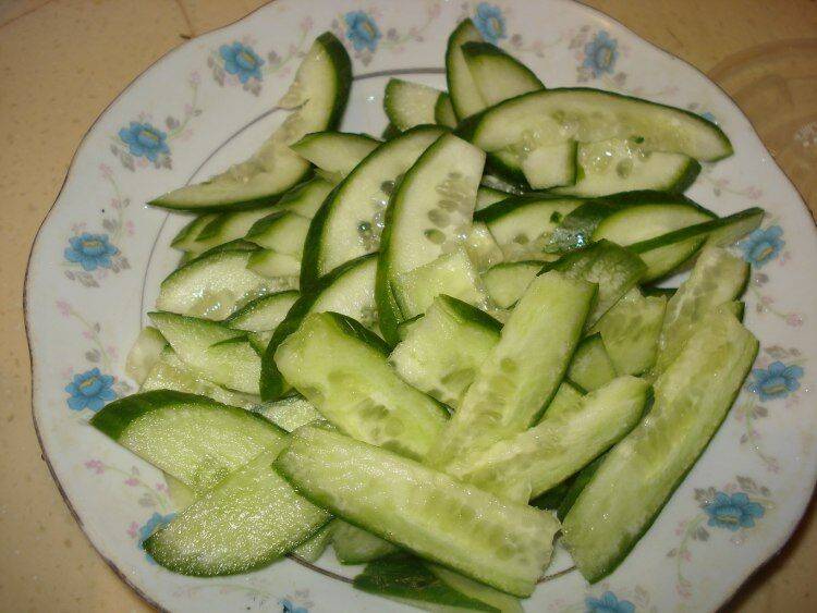 2、青瓜洗净切片。