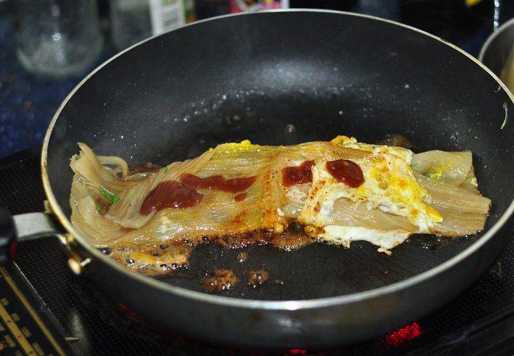 10、加入适量蒜蓉辣酱抹匀,即可出锅,可切块食用更方便。