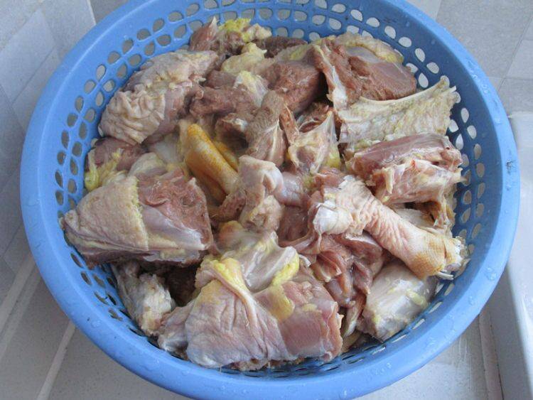 4、先把鹅肉冷水下锅焯水后捞起洗净。