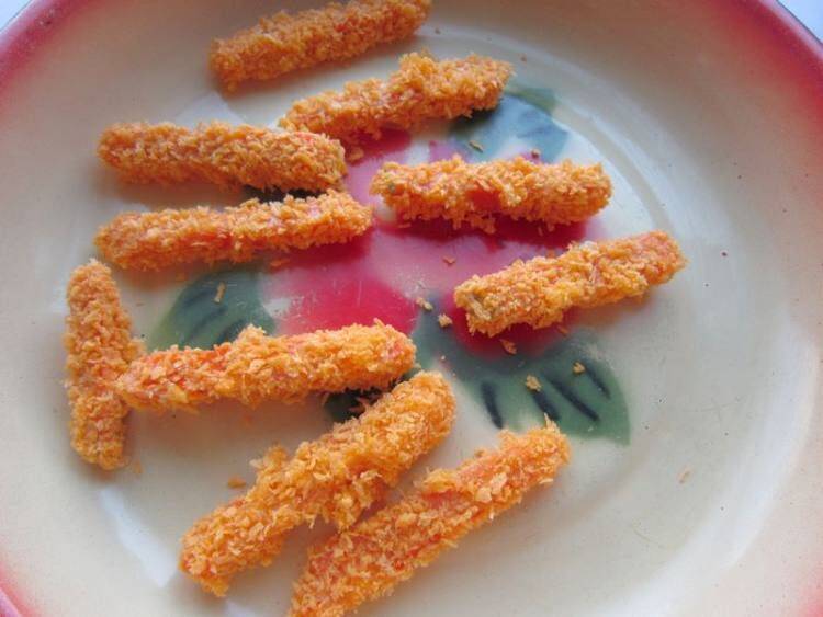 11、大火烧开油,下南瓜条复炸一次捞起沥油即可。