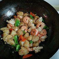 2、海虾去除虾线,鱿鱼改花刀后切块。