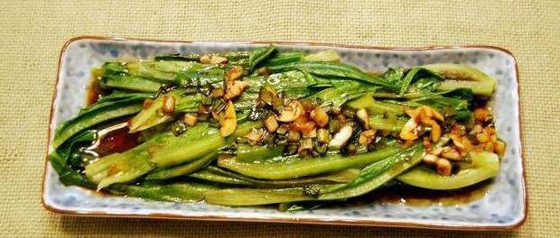用料:油麦菜3棵、生抽2勺、醋半勺、糖半勺、橄榄油1勺、香油1勺、蒜泥适量、葱花适量。