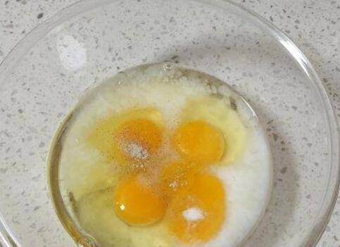 2、鸡蛋打于碗中,加水淀粉、精盐,搅打均匀。