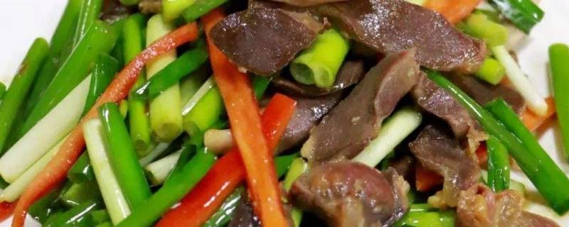 1、食材准备:鸭胗300克、蒜苔250克、油、盐、姜丝、辣椒丝、酱油、味精、料酒、十三香各适量。